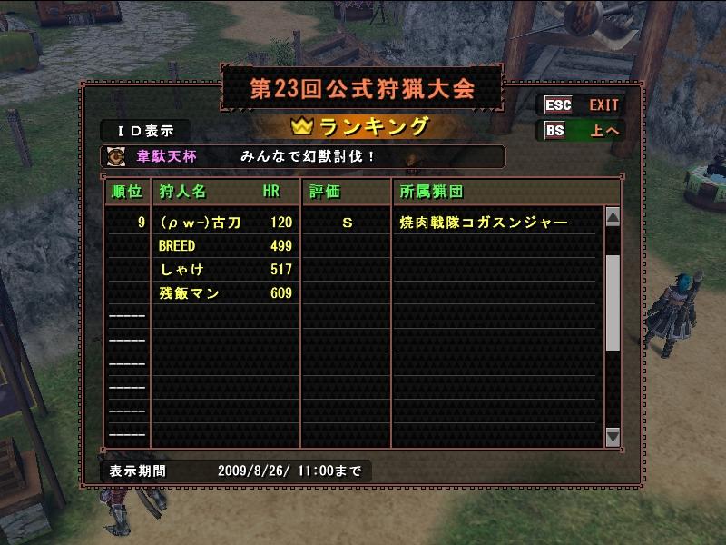 第29回(沼地グラビドスイー)鯖対抗で鯖のボードには残ったけど公式には残れず・・・弓最後まで使っていた自分は駄目だな。