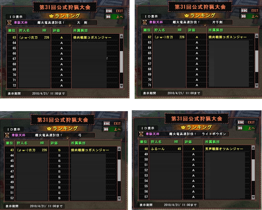 あれは大剣で203位とかそんぐらい。HR的な意味で最適武器も作れなかったしきつかった。