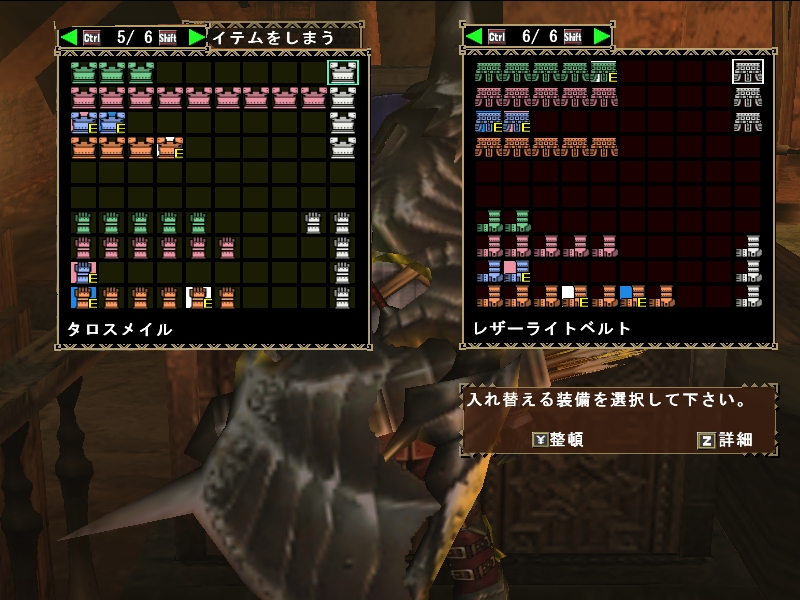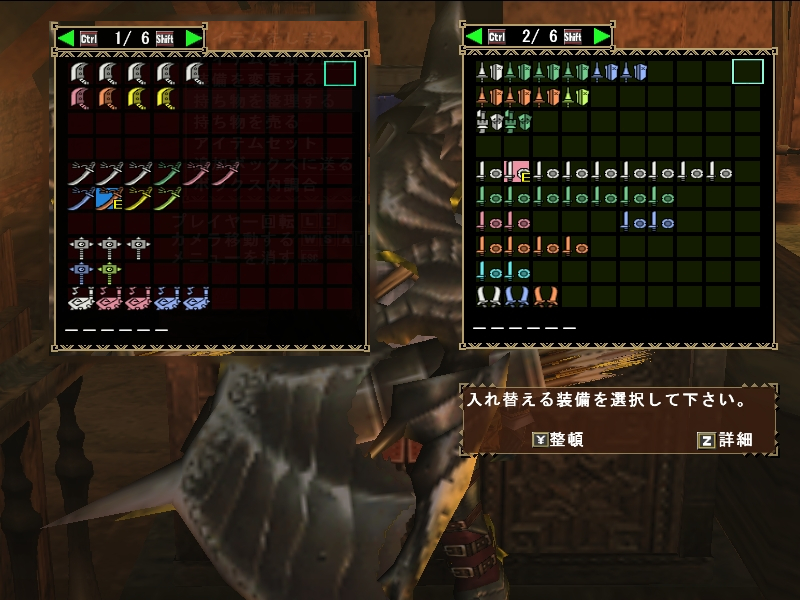 1ページ目は大剣(3列ぐらい)、太刀(3列)、ハンマー(2列)、笛(1列、これはもっと増やすかも)